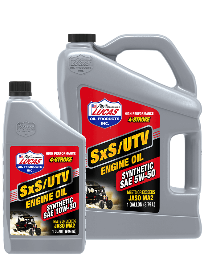 Lucas Oil’s Synthetic and Synthetic Blend 4-Stroke SxS Engine Oils are a line of products in the most common SAE viscosity grades recommended by SxS manufacturers. These high-performance, all-temperature and all-weather-ready engine oils are recommended by Lucas Oil for use in side-by-side (SxS), ATVs, UTVs and virtually all off-road recreational vehicles.