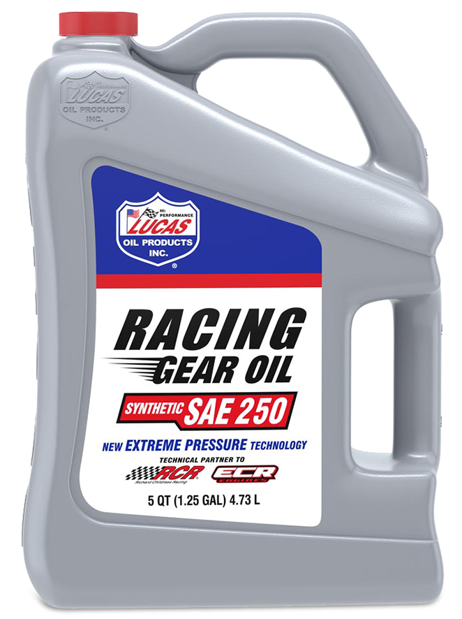 Synthetic SAE 250 Gear Lubricant is designed for high horsepower, high torque conditions. Made from the highest quality heavy synthetic base oils, Lucas Racing Gear Oils contain a proprietary package of additives and extreme pressure lubricants specially engineered for shear stability and the demands of severe racing conditions. This synthetic formulation provides a barrier cushion between metal surfaces. It absorbs impact by creating a barrier coating on gear surfaces for the critical line of protection against wear, pitting and scoring. This oil is long lasting and perfect for any heavy duty application.